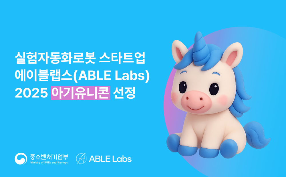 실험 자동화 로봇 전문기업 에이블랩스(대표 신상)가 중소벤처기업부의 ‘2025년 아기유니콘 육성사업’에 최종 선정됐다고 29일 밝혔다.