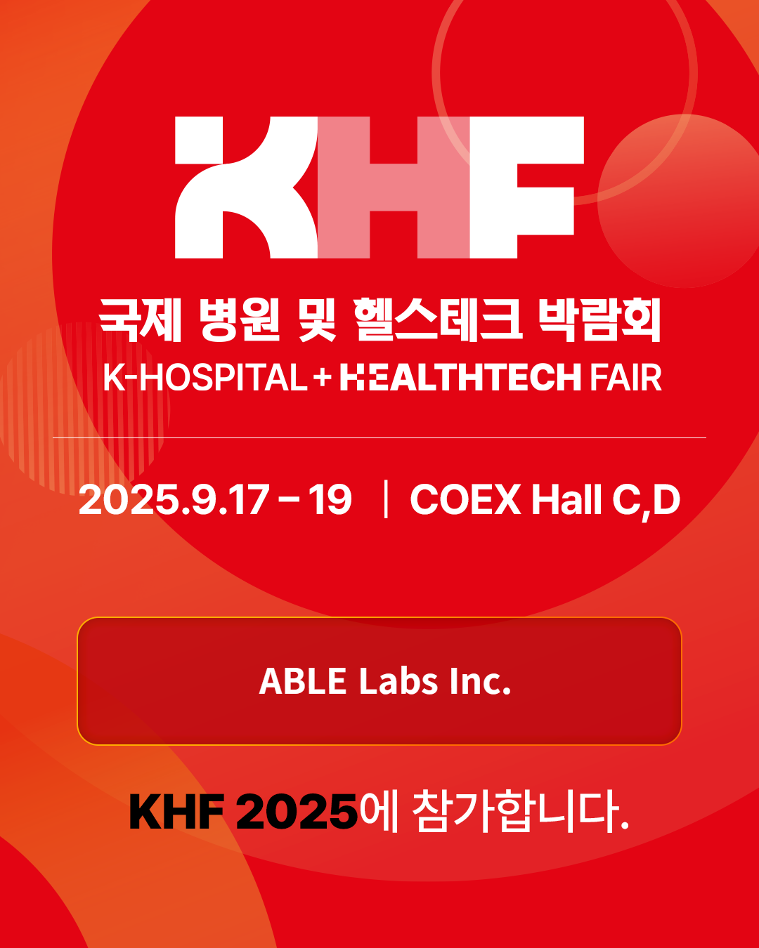 2025년 9월 17일부터 19일까지, 서울 코엑스에서 개최되는 KHF 국제 병원 및 헬스테크 박람회에 참가합니다.